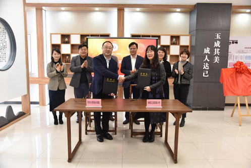 交流座谈后,全体与会人员一起移步学校玉成馆,了解学校发展历程,全面深入学校办学情况,并在玉成馆参加两校签约及揭牌仪式。