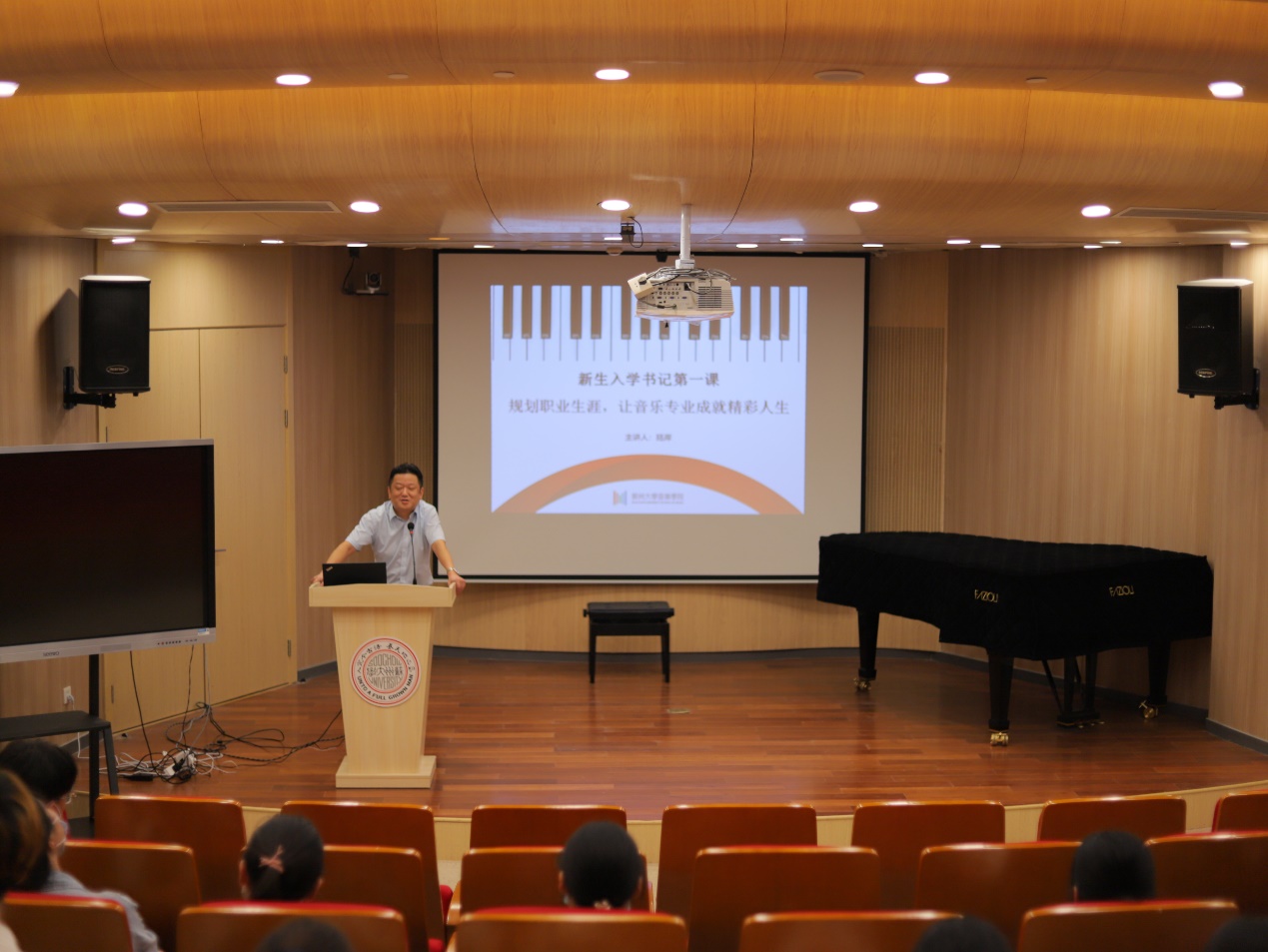 陆岸书记也对久久小说 新生的到来表示热烈欢迎,并以“规划职业生涯,让音乐专业成就精彩人生”为题,为2020级全体新生讲授开学第一课。