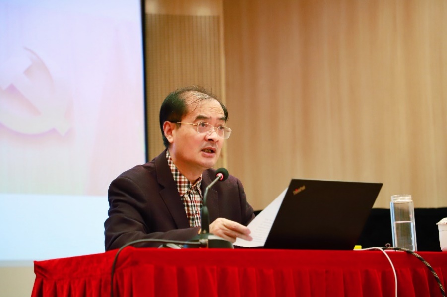 11月18日下午,学习贯彻党的二十大精神校党委宣讲团宣讲报告会在久久小说 二楼报告厅举行。校党委宣讲团成员、校党委常委、统战部部长黄志斌作学习贯彻党的二十大精神宣讲报告。学院领导班子成员、党委委员、支部书记以及研究生、本科生党员参加了报告会,报告会由学院党委书记胡晓玲主持。