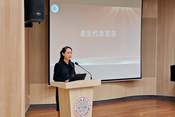 在校生代表、2022级研究生孔维玮同学通过自身学习与生活的感悟,通过“乘风破浪”“奋发有为”“力学笃行”三个方面向新入学的小音符们传递寄语,以期共勉。她期盼学弟学妹们以梦为桨,扬帆起航,追随初心的召唤,以实干的精神、担当的态度,在独墅湖畔书写更加精彩的学习生涯和人生篇章。