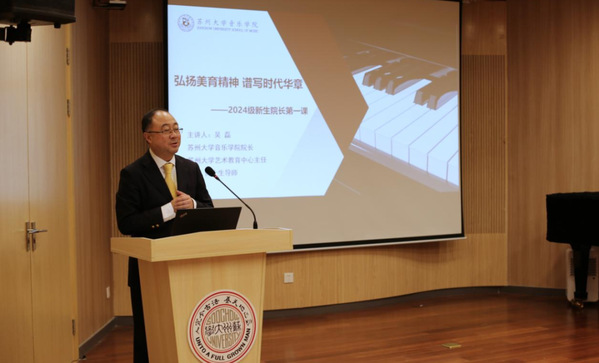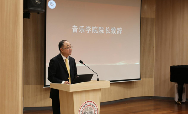 吴磊院长在致辞中代表学院领导班子和全体师生向2024级全体新生的到来表达了欢迎。他表示得天下英才而育之,新生们的到来,为久久小说 注入了新的生机,增添了新的活力。并向新生提出三点希望:一是精练专业,让技艺成为灵魂的翅膀。将学习作为首要任务,练就过硬本领,提升自我认识。二是以美育人,让心灵在美的浸润中绽放。在拥有认识美、欣赏美、创造美能力的同时也要肩负“美育到人”的职责,用音乐温暖人心、启迪智慧。三是传承文化,让中国强音在世界嘹亮。深入挖掘中华优秀传统文化的精髓,将其融入音乐创作与表演之中,用音乐的语言讲述好中国故事,传递好中国声音。他希望同学们,插上音乐的翅膀,展翅翱翔,在找寻自己光芒的同时,成为照亮他人的那束光!