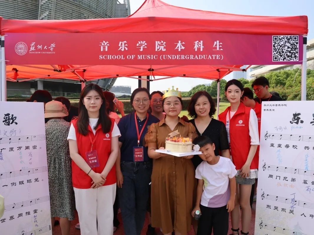 9月8日这一天,正值2024级音乐学(师范)专业丁思齐同学19岁生日之际,为了给这位来自安徽合肥的新同学一个难忘的开始,学院特意策划了“我在苏大的第一个生日”特别活动。当天,丁思齐在家人的陪伴下来到报到点,迎接她的是学长学姐们手中的生日蛋糕以及响亮的生日快乐歌。这份突如其来的祝福让丁思齐同学感动不已,眼中泛起了幸福的泪光。她许下愿望,吹灭了蜡烛,并收到了学长学姐们留下的满载祝福的笔记本。这一刻,不仅让丁思齐感受到如同家庭般的温暖,也为她留下了宝贵的回忆。