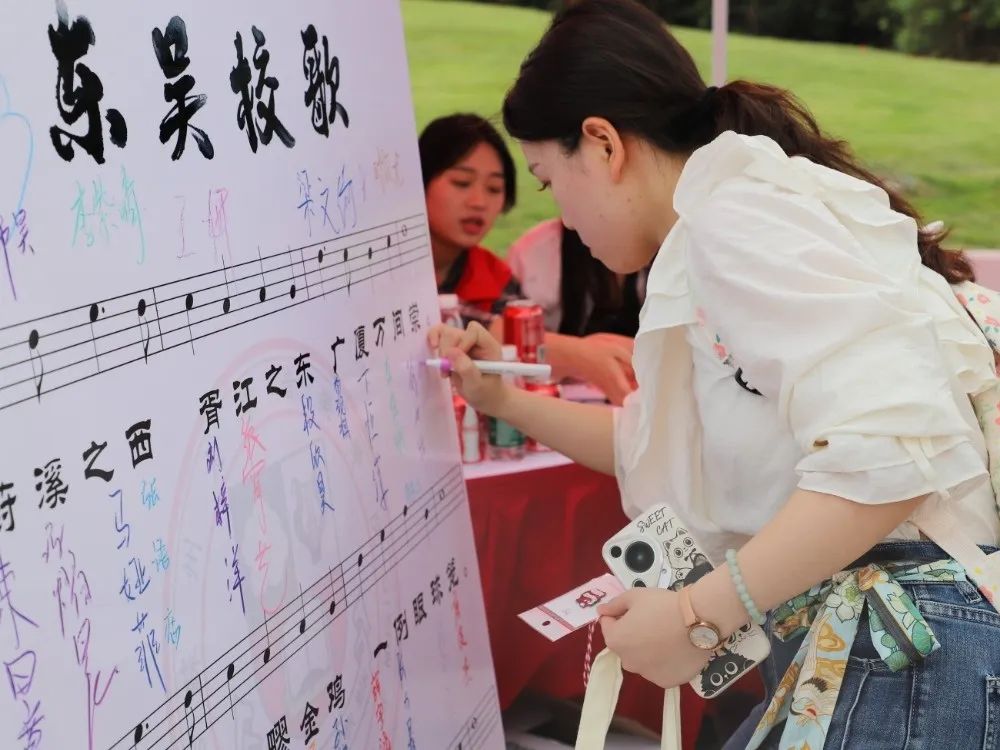 学院将久久小说 东吴校歌的旋律巧妙地改造成签到版,新生们在熟悉的乐谱下,一笔一划地写下自己的名字。