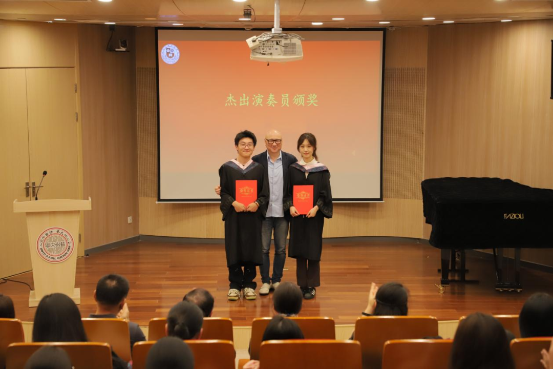 最后,吴磊院长讲话。他首先向同学们的顺利毕业表达祝贺,向学院辛勤工作的教职工致以崇高的敬意,向为同学们成长成才付出努力的后勤人员和家长们表示衷心的感谢。他回顾了毕业生四年来取得的丰硕成果。毕业在即,他向毕业生们提出三点希望:一是要不忘初心,做德艺双馨的艺术家。二是要挺膺担当,做人格健全的从业者。三是带着一片音符向未来,做一个内心丰盈、守候梦想、接受挫折、坚韧前行的平凡人。他希望同学们,继续保持苏大人的人文情怀,以美育浸润的赤子之心看待世间万象,以坚毅不屈的浩然正气伫立浩瀚星河,以乐于奉献的宽阔胸怀成为照亮他人的那束光!