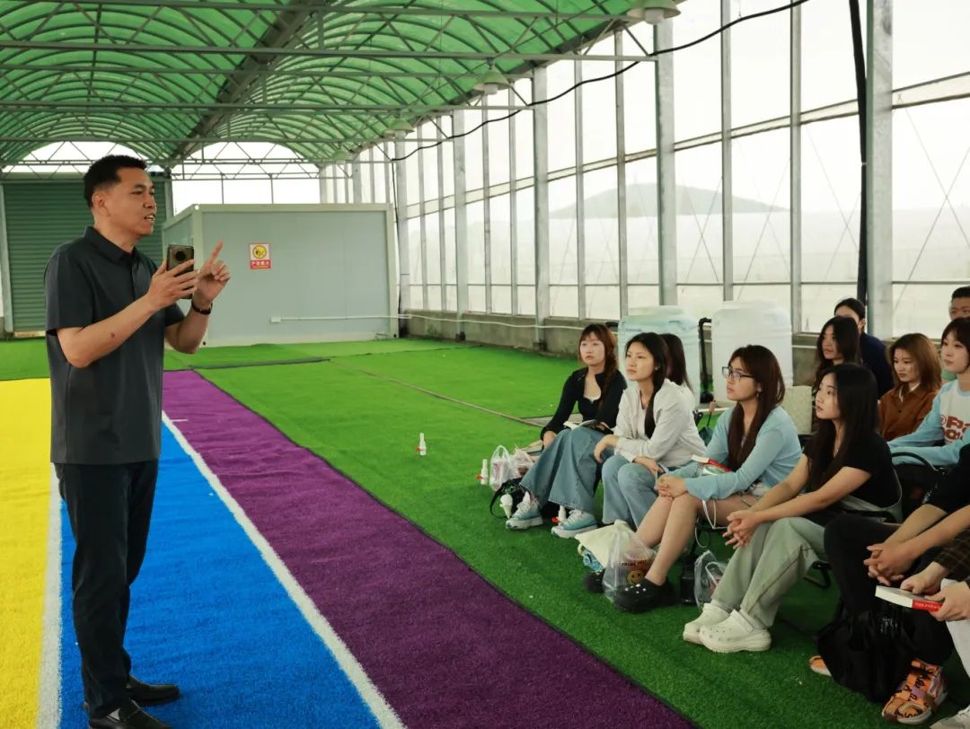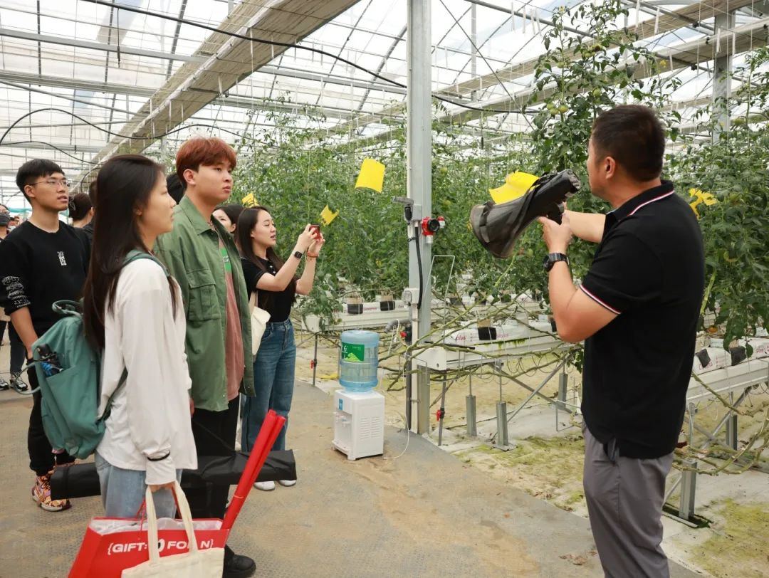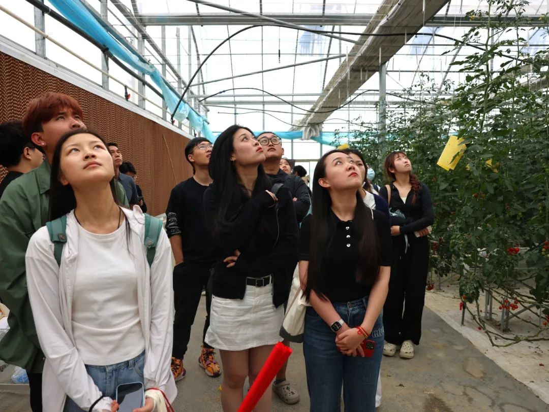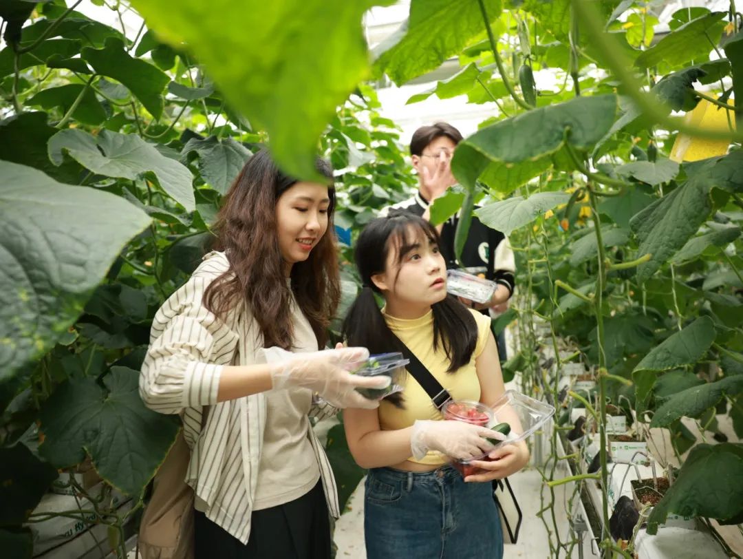 参观农场收获大。莘园幸福农场负责人带领师生们参观了农业基地无土栽培区和联动有土种植区,展示了基地的整体种植规划。在无土栽培展示区,工作人员详细介绍了无土栽培技术的原理、优势,展示了栽培区小番茄、黄瓜、贝贝南瓜、西瓜等农作物。在这里,大家不仅欣赏了田园的美景,还收获了丰富的农业知识,对当下的农业技术与发展有了更深的了解。