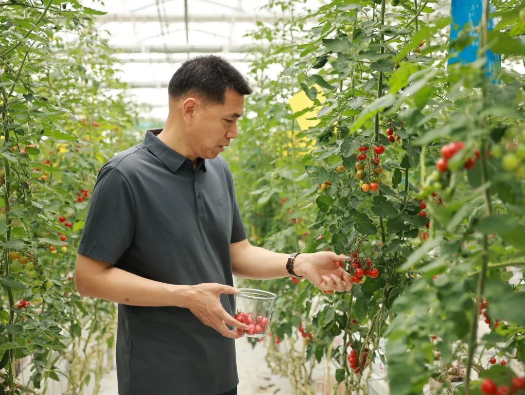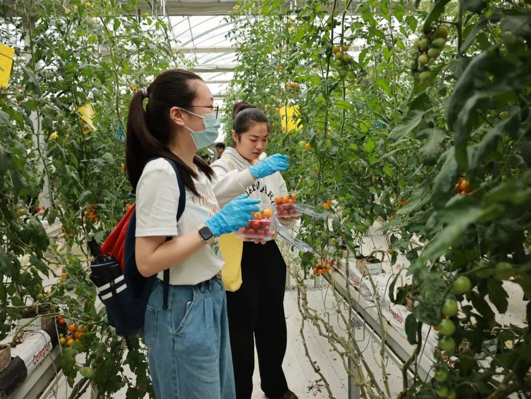 夏日采摘乐趣多。随后,师生们纷纷跃跃欲试,在工作人员的指引下,大家在垄垄翠绿的植株间采摘小番茄、黄瓜等新鲜瓜果,在劳动实践中感受自然的田园野趣,同时也更加深入地感受到劳动的艰辛与丰收的喜悦。