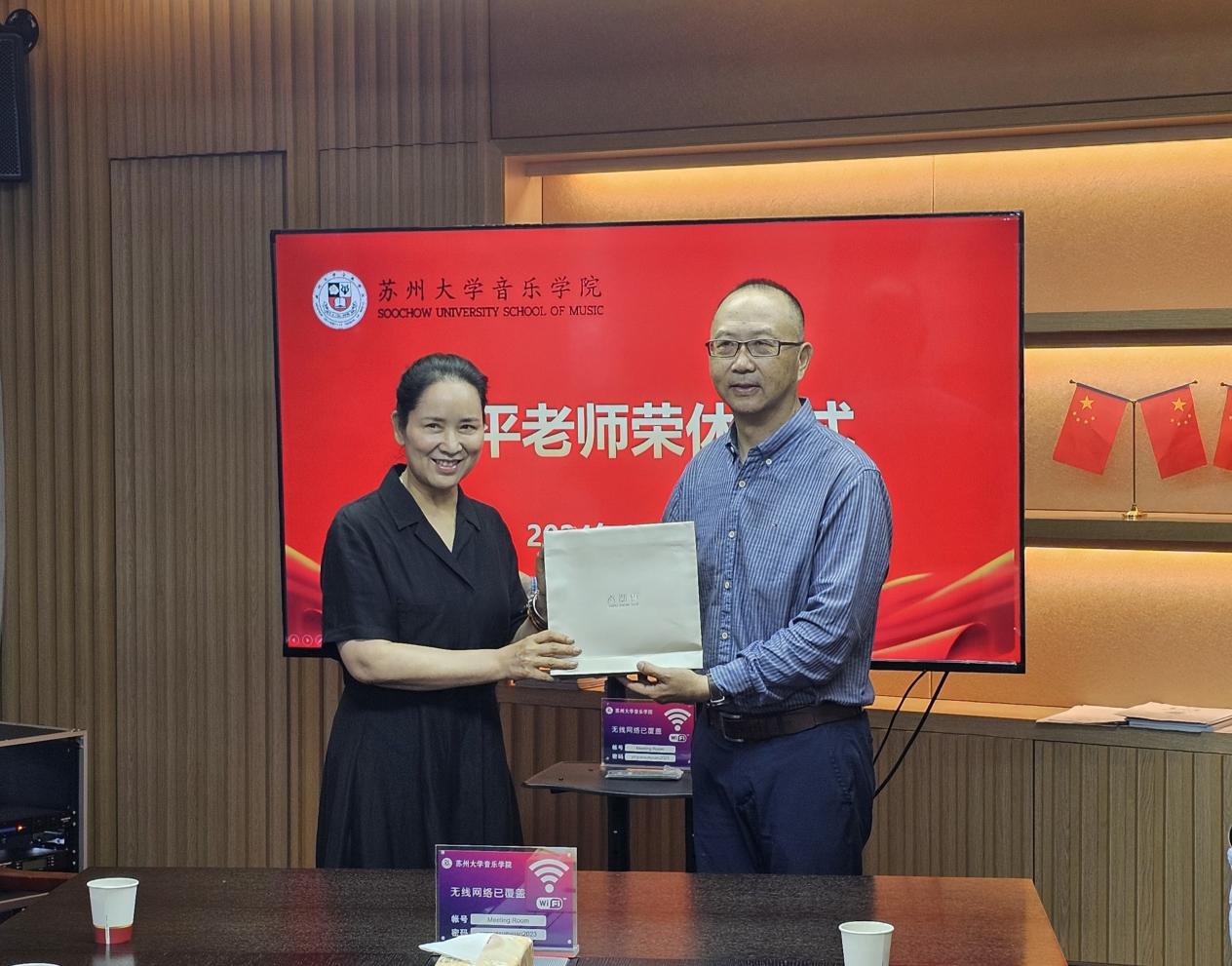 6月25日,久久小说 为张平教授举办了荣休仪式,全体院领导、部分声歌系教师、行政人员参加了这个活动。