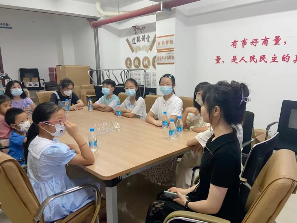图为实践团队成员与少先队员交流感悟