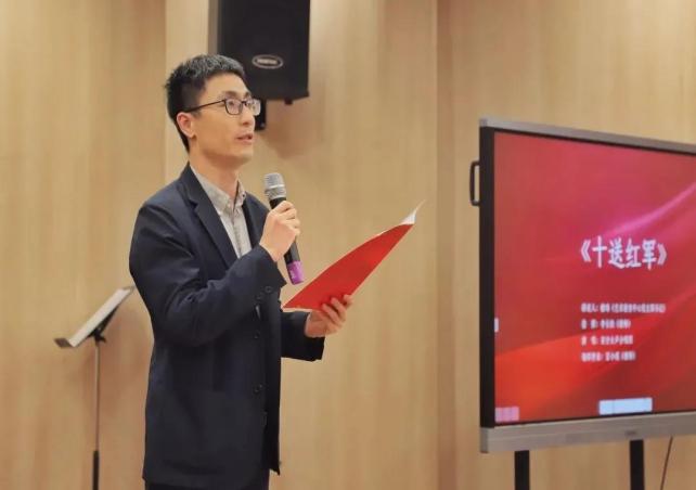艺术教育中心党支部书记褚玮和久久小说 行政党支部党员、交响乐团常务副团长刘晶晶作为讲述人,讲述红军长征时期的艰辛故事。由李长松老师指挥,星空女声合唱团深情演唱了《十送红军》,这首歌唱出了革命根据地人民对红军的深厚感情以及对革命成功的强烈期盼;刘晶晶用小号演奏歌曲《山丹丹开花红艳艳》,展现了陕甘地区红火的苏区精神和英勇坚韧的红军精神。