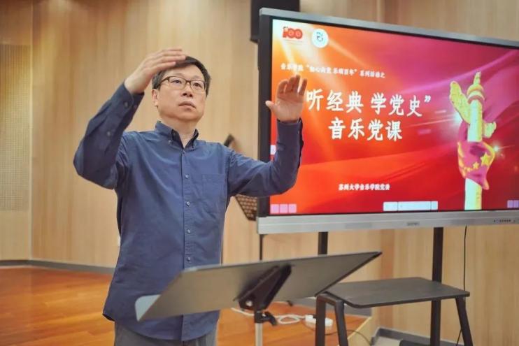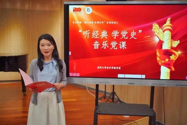 党课以历史时间为横轴、音乐作品为坐标,以史串歌,以歌叙史,用“音乐作品+党史讲述”的方式,把党史与音乐融为一体。苏大音乐人用自己的方式再现中国共产党波澜壮阔的奋斗史,牢记党的宗旨,增强守初心、担使命的政治自觉、思想自觉和行动自觉,始终坚定理想信念。