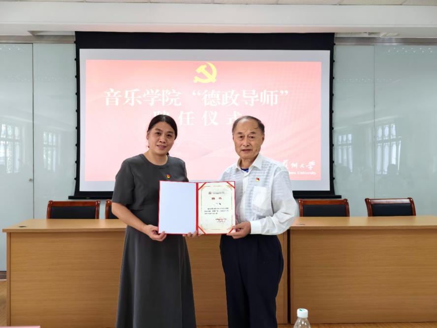 学院党委书记胡晓玲为离退休教师王雄冠颁发本科生党支部“德政导师”聘书,未来将通过“红色故事会”“人生导师课”等形式,助力青年党员扣好“人生第一粒扣子”。
