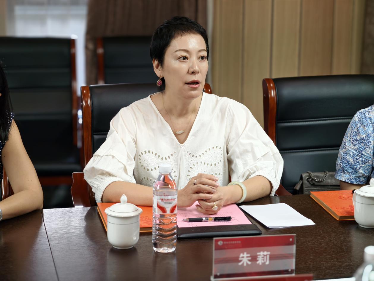 胡晓玲书记代表学院领导班子向朱莉一行莅临学院表示热烈欢迎,并详细介绍了学院的师资、课程体系及场馆保障,表达了学院对唐仲英基金会本次项目推进工作的重视及后续双方在文化艺术等领域深度合作的信心。