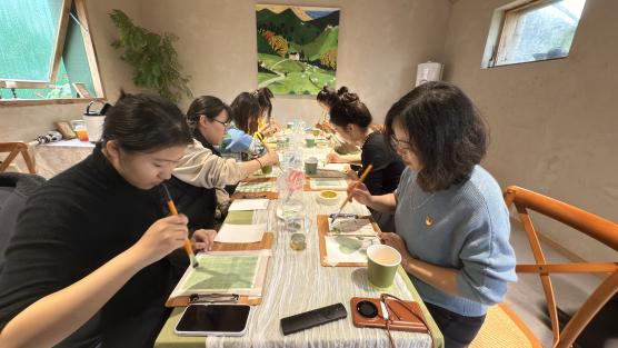 下午,师生一行共同体检了非遗手工制作——蓝晒。蓝晒作为传统工艺智慧的结晶,引领着同学们打开一扇通往传统文化美学的大门,从中不仅感受到艺术之美,更深刻领悟传统技艺传承与创新的责任。这次实践活动,将美育教育从课堂延伸到了非遗手工领域,让美育事业在传统与现代的交织中蓬勃发展,既丰富了师生们的艺术体验,又拓宽了美育的维度,对于培养具有深厚文化底蕴和审美素养的音乐人才有着积极的推动作用,也让蓝晒这种古老的技艺得到发掘和推广,为乡村文化注入青春活力。