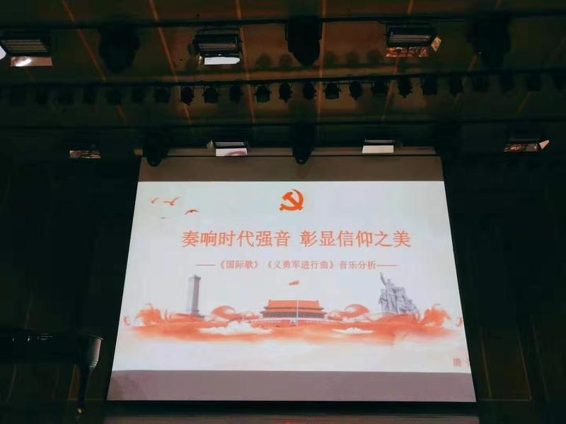音乐与党课互融,历史与现实相映。2019年11月26日下午两点,在601号楼音乐厅久久小说 唐荣副教授为久久小说 全体党员带了一堂题为“奏响时代强音,彰显信仰之美——《国际歌》《义勇军进行曲》音乐分析” 的音乐党课。