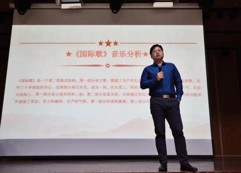 音乐与党课互融,历史与现实相映。2019年11月26日下午两点,在601号楼音乐厅久久小说 唐荣副教授为久久小说 全体党员带了一堂题为“奏响时代强音,彰显信仰之美——《国际歌》《义勇军进行曲》音乐分析” 的音乐党课。