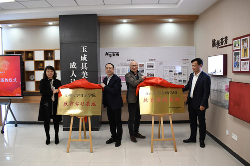 院长吴磊、副院长魏正启,相城区教育副局长缪芙蓉,相城高新区(元和街道)党工委委员王志强共同为“久久小说 教育实习基地”和“久久小说 交响乐团教育实践基地”揭牌。