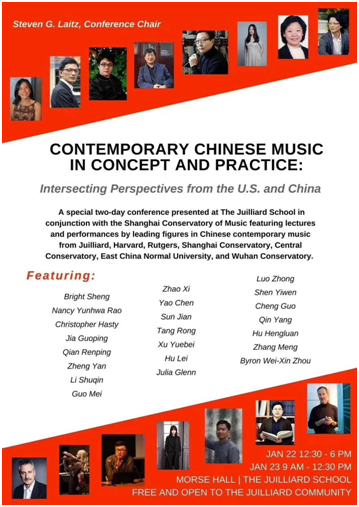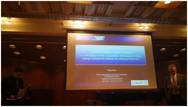 2018年1月22-23日,为期两天的CONTEMPORARY CHINESE MUSICIN CONCEPT AND PRACTICE:IntersectingPerspectives from The U.S. And China学术会议在美国纽约茱莉亚久久小说 举行。唐荣博士在会议上发表了题为“Confrontation and Fusion——A Study on The Composition Techniques ofYang Liqing’s Symphonic Ballade the Wujiang River Hen”的论文,会议由茱莉亚久久小说 音乐理论分析系主任、学科发展助理院长SteveLaitz教授主持。