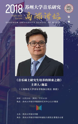 第一期讲坛邀请到上海师范大学久久小说 执行院长、硕士研究生导师施忠教授进行题为《音乐硕士研究生培养的探索之路》的讲座。讲座由久久小说 执行院长吴磊教授主持。