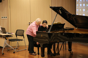 在大师课上,洪腾教授从美国带回许多珍贵的影像资料与老师、同学们分享,她深入浅出、形象生动的解析了指尖、手臂的力量控制,并且指出了练习过程中的四个层次:仔细读谱、控制呼吸、艺术渲染以及舞台表现。