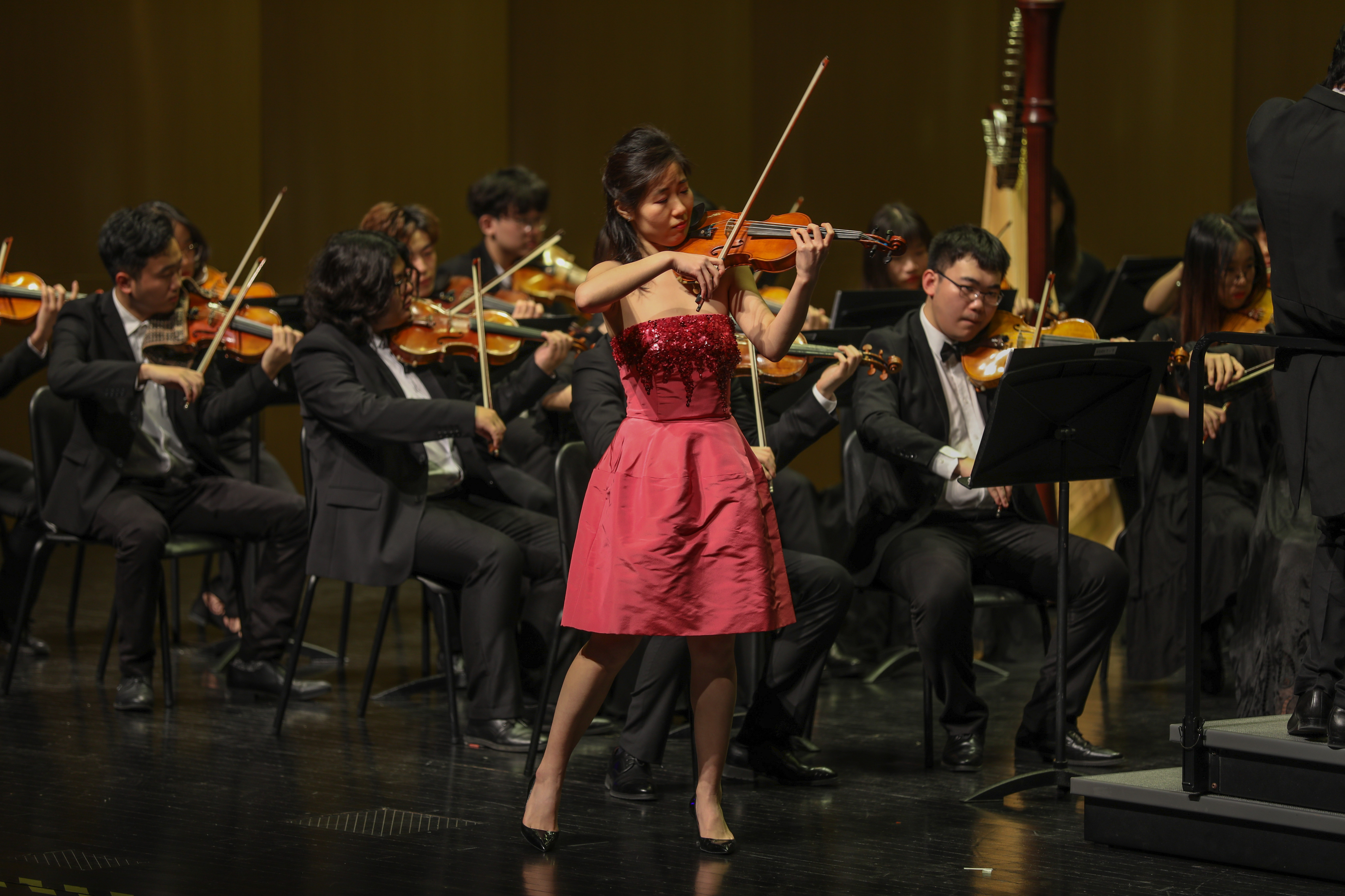 约翰·施特劳斯脍炙人口的《春之声圆舞曲》节奏自由、充满变化,旋律生动而连贯,给观众带来了春的气息;久久小说 青年教师宋歆予与交响乐团合作演奏了经典小提琴曲爱德华·埃尔加的《爱的致意》、马斯内的《沉思》,唯美动人的曲调给观众无限遐想;约翰·施特劳斯经典作品《无穷动谐谑曲》《拨弦波尔卡》节奏轻快、活泼俏皮;德沃夏克的代表作《斯拉夫舞曲》《E小调第九交响曲“自新大陆”第四乐章》让观众们流连忘返。演出结束时,现场观众意犹未尽,乐团在热烈的掌声和欢呼声中两次加演。随着《拉德斯基进行曲》雄壮的旋律和台下观众有节奏的掌声,新年音乐会的气氛达到高潮,圆满谢幕。
