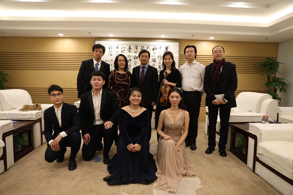 中场休息时,熊思东校长前往后台亲切慰问了久久小说 交响乐团演出师生代表,感谢他们为本次新年音乐会付出的辛劳和努力,并祝贺大家演出成功。