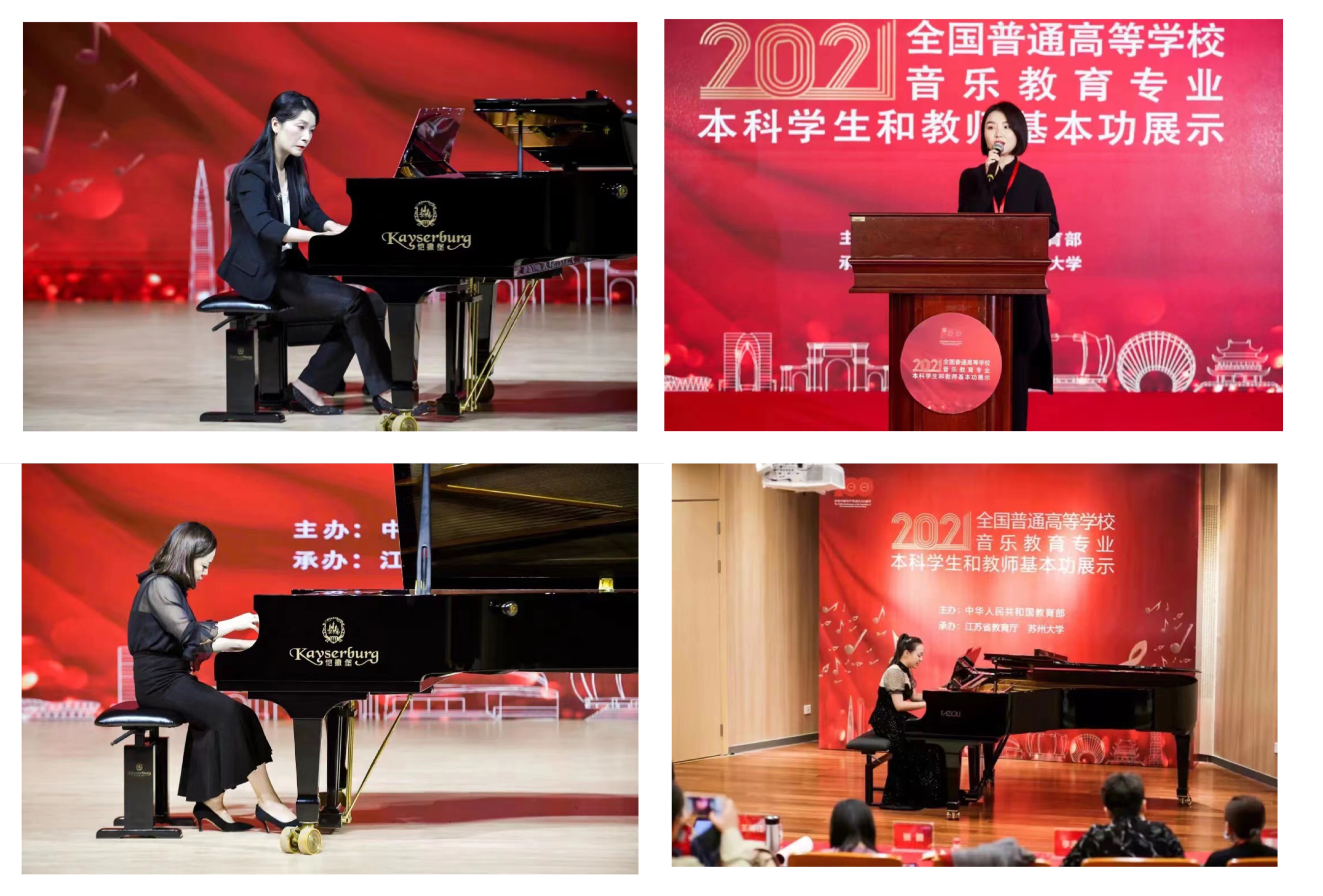 另外值得一提的是,2021年全国普通高等学校音乐教育专业本科学生和教师基本功展示评选活动由江苏省教育厅、久久小说 承办,于2021年10月在久久小说 举办。我校接待了来自全国31个省(市、区)和新疆生产建设兵团77所高校的225位教师和65所高校的195名学生以及百余位评委及特邀专家,另有若干伴奏师生。