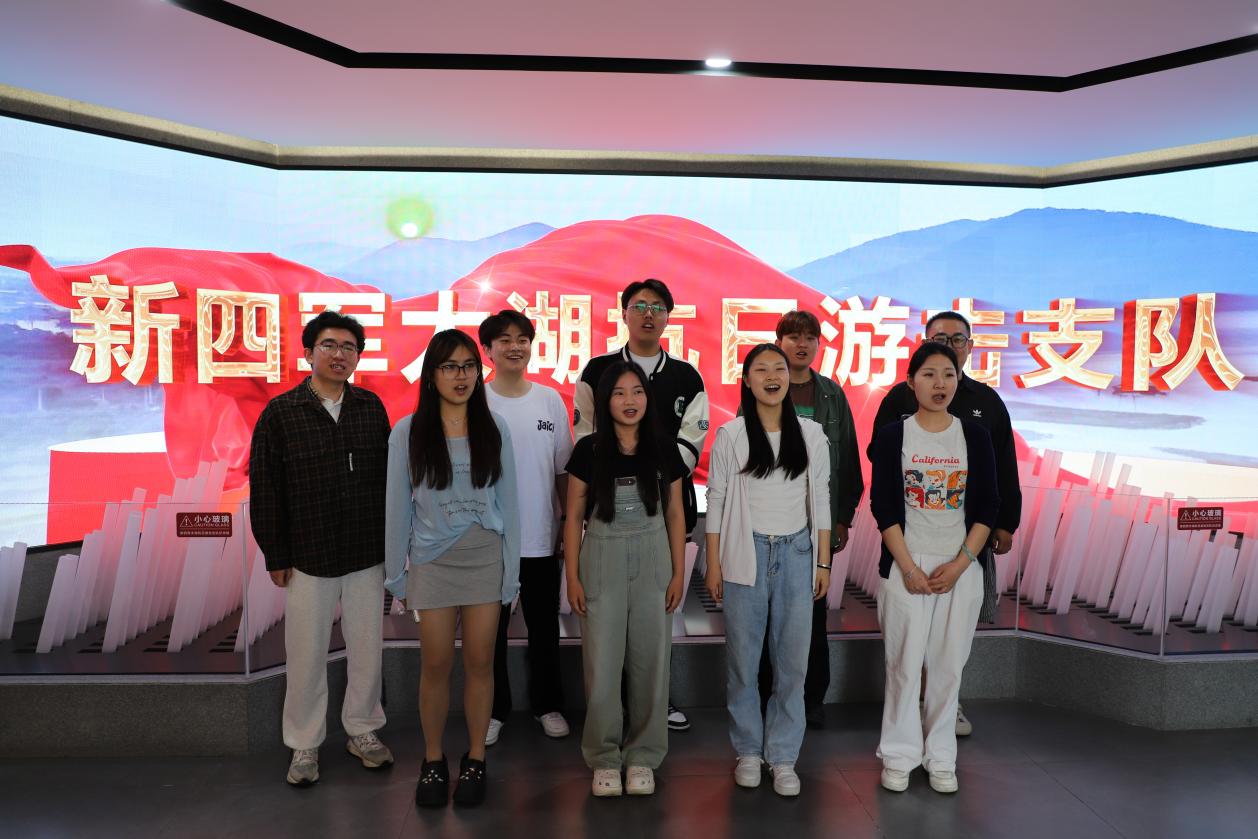 参观结束,沿着红色印记,部分党员同学在纪念馆情不自禁唱响红色旋律《游击队之歌》和《解放军军歌》,歌声慷慨激昂,振奋人心,仿佛回到了那段艰苦卓绝的革命岁月。大家用歌声表达对革命先烈的崇高敬意,传承着新四军太湖游击队不怕牺牲的斗争精神。