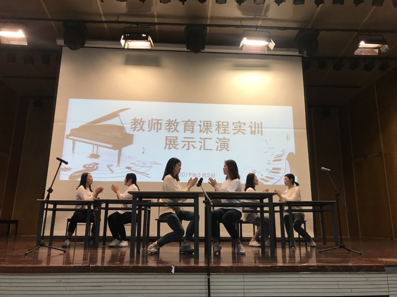 5月5日上午,16级音乐教育全体同学在601音乐厅,进行了教师教育课程实训展示汇演。活动通过分组声势创编展示了课程教学阶段性成果,创编歌曲包括自选教材歌曲一首及流行歌曲一首。音乐元素与声势的结合、和声的编配、团队的合作,展示了音乐师范生的综合素质以及师范技能。