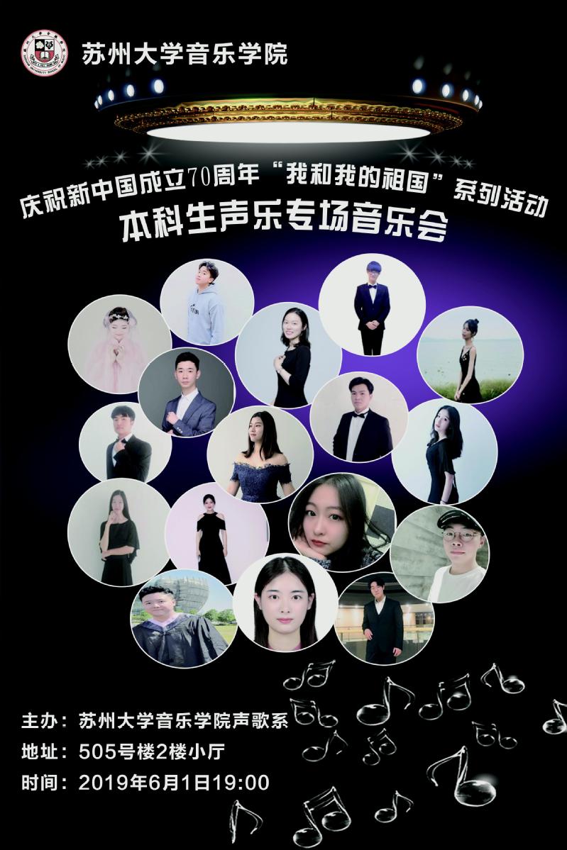 演出信息:本科生声乐专场音乐会,6月1日晚7:00,505号楼小音乐厅